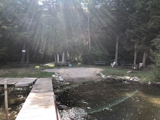 Acorn park is one of our two swimming parks and is located at the very south end of Antelope Trail. It is a wooded park with a clearing at the lake. There is a small sand beach, a small dock, raft and 2 picnic tables. There is also a canoe/kayak rack near the water.